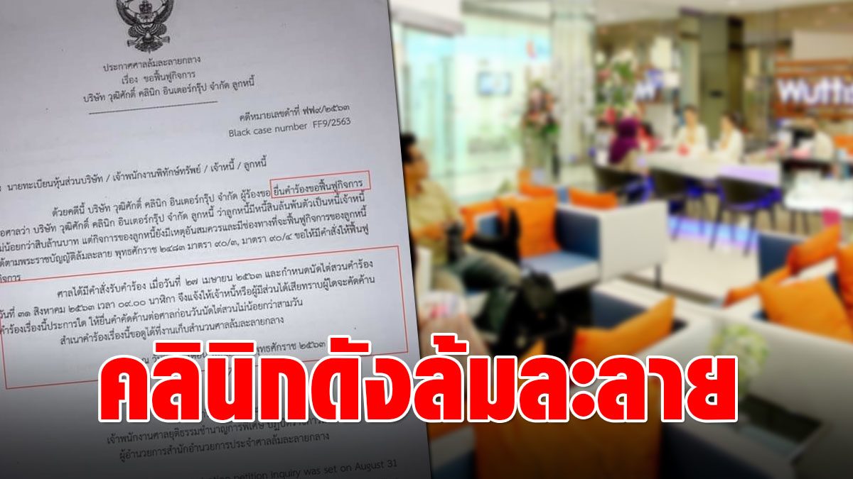 เพจทนายดัง เผยประกาศศาลล้มละลายกลาง คลินิกเสริมความงามดังยื่นล้มละลาย เตือนซื้อคอร์สเสริมความงาม ต้องติดตามอย่างใกล้ชิด
